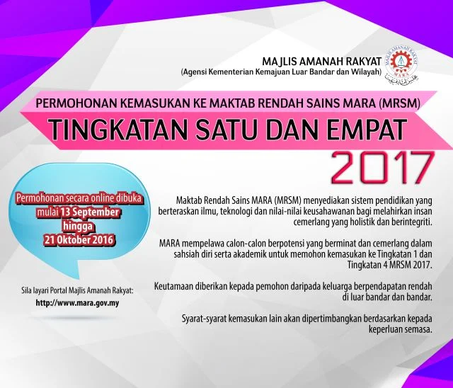 1. Iklan Kemasukan MRSM Tingkatan 1 Semenanjung