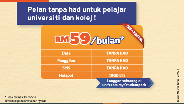 Unifi Tawar Mobile Pek Pelajar Tanpa Had. Unifi memperkenalkan pelan istimewa mereka iaitu Pek Pelajar Unifi Mobile sempena Perintah Kawalan Pergerakan (PKP). Perkhidmatan ini membolehkan pelajar berhubung dan mengakses internet tanpa had serta membolehkan pelajar mengakses portal pembelajaran tanpa batasan.