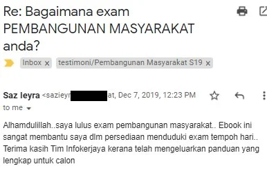 Tengok dan lihat bagaimana calon-calon exam Pembantu Pembangunan Masyarakat S19 tahun 2019 telah berjaya dalam peperiksaan ini dengan adanya panduan yang tepat. Segala impian akan menjadi kenyataan.